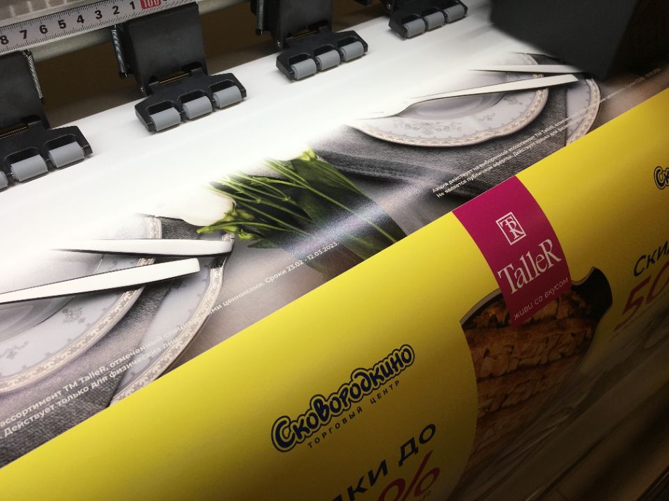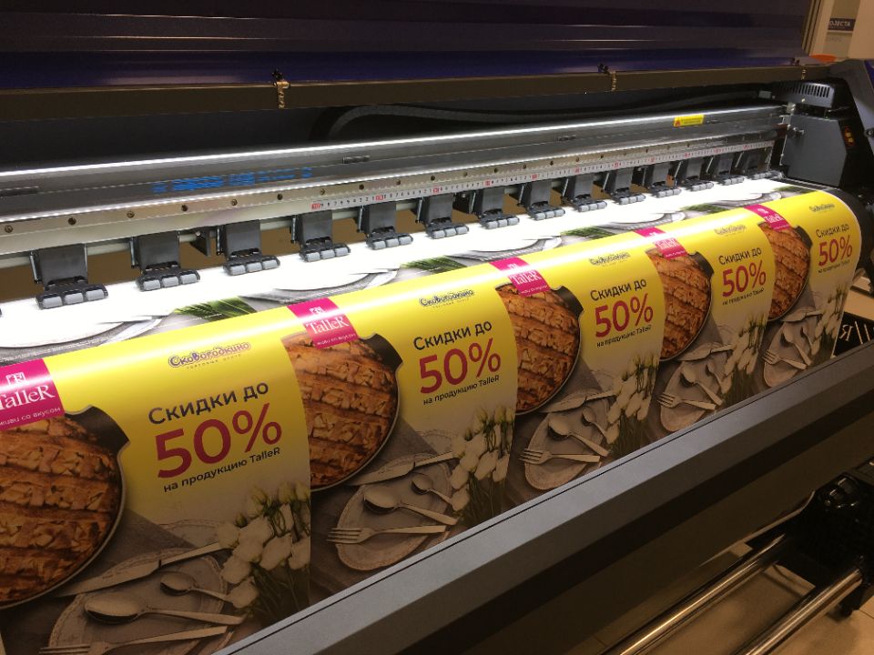 Благодаря использованию экосольвентных чернил нового поколения отпечатки совершенно не имеют запаха, мгновенно высыхают и готовы к использованию сразу после печати.